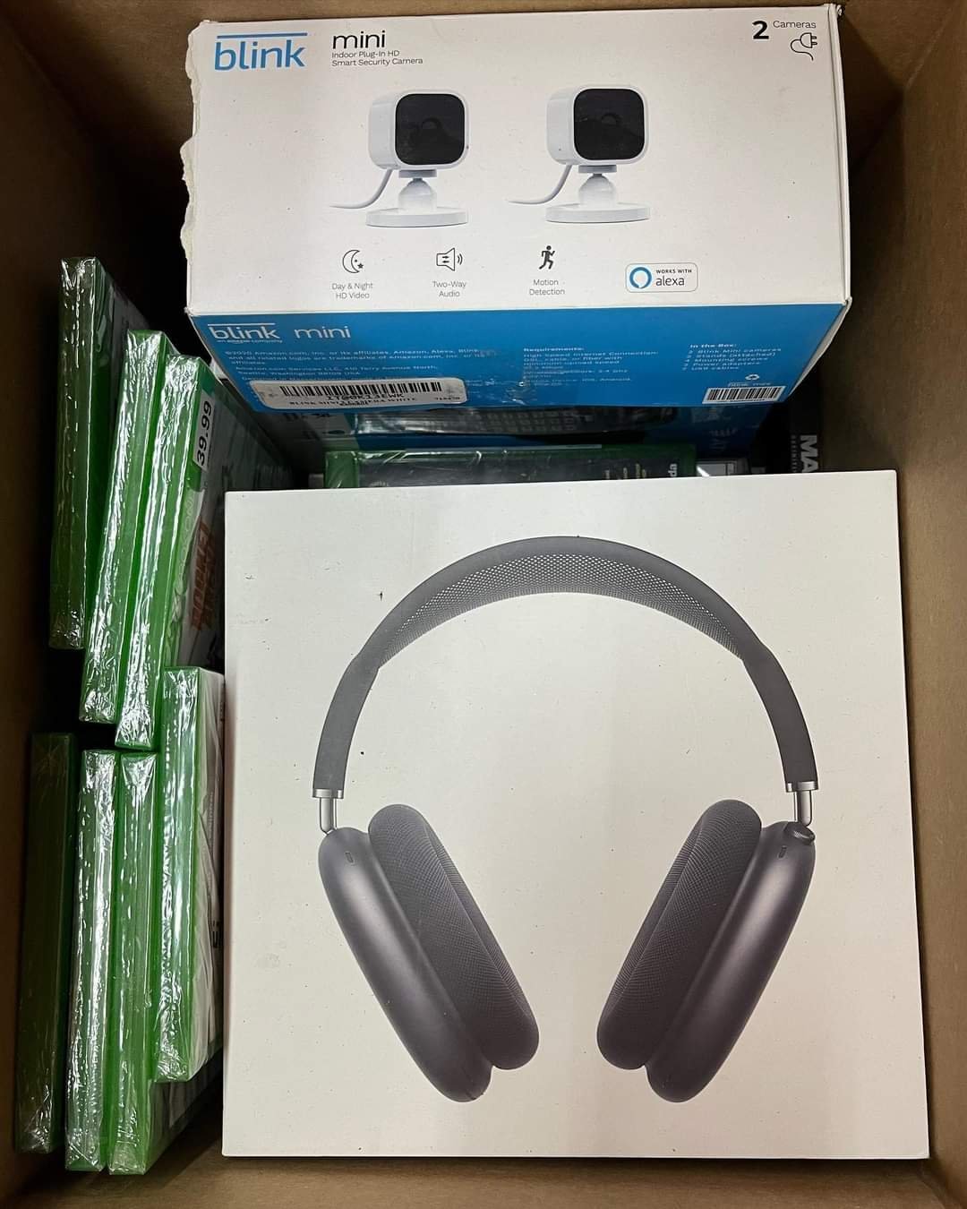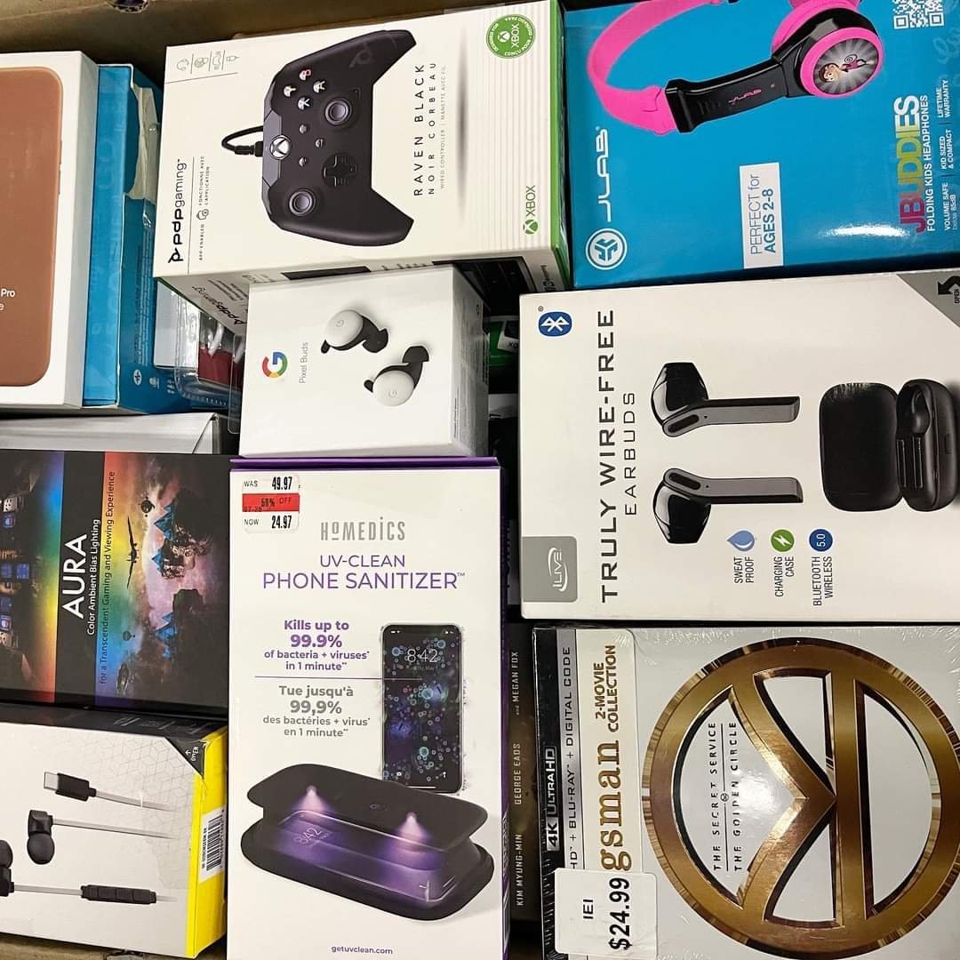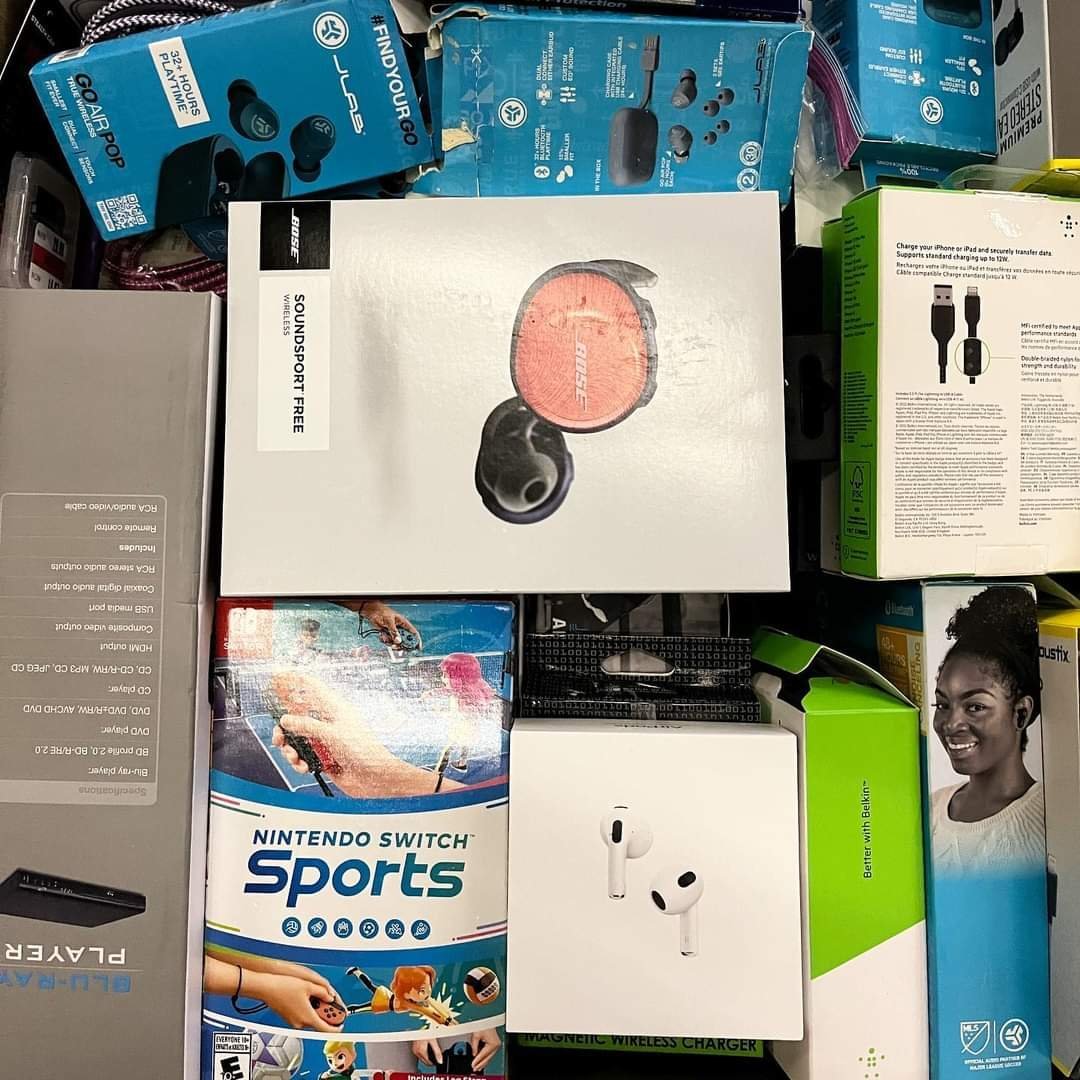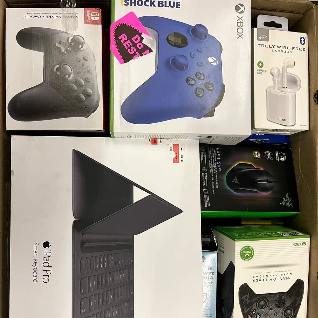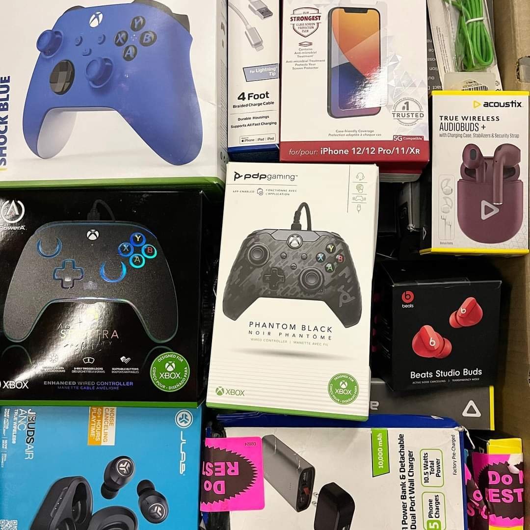 The Amazon electronic mystery box contains a lot of electronics such as iPhones, airpods, controllers, music players charger ps5 and many other accessories