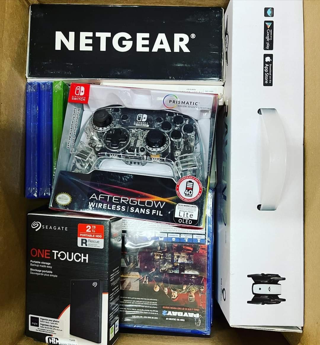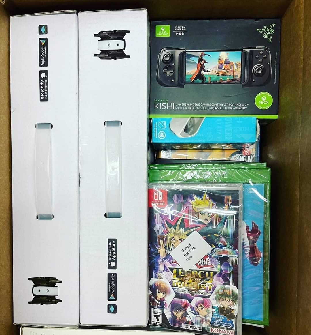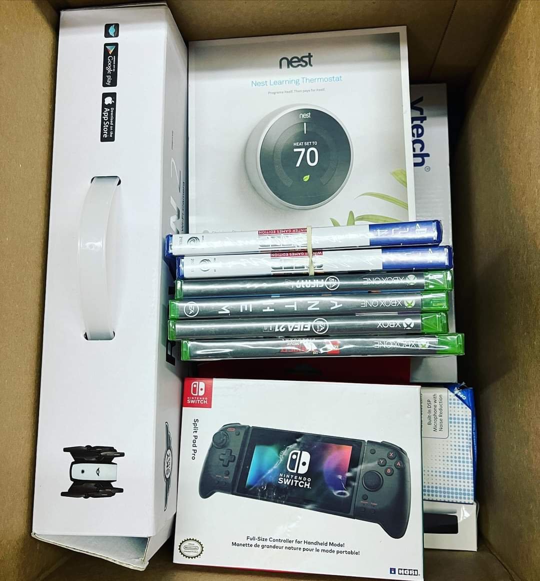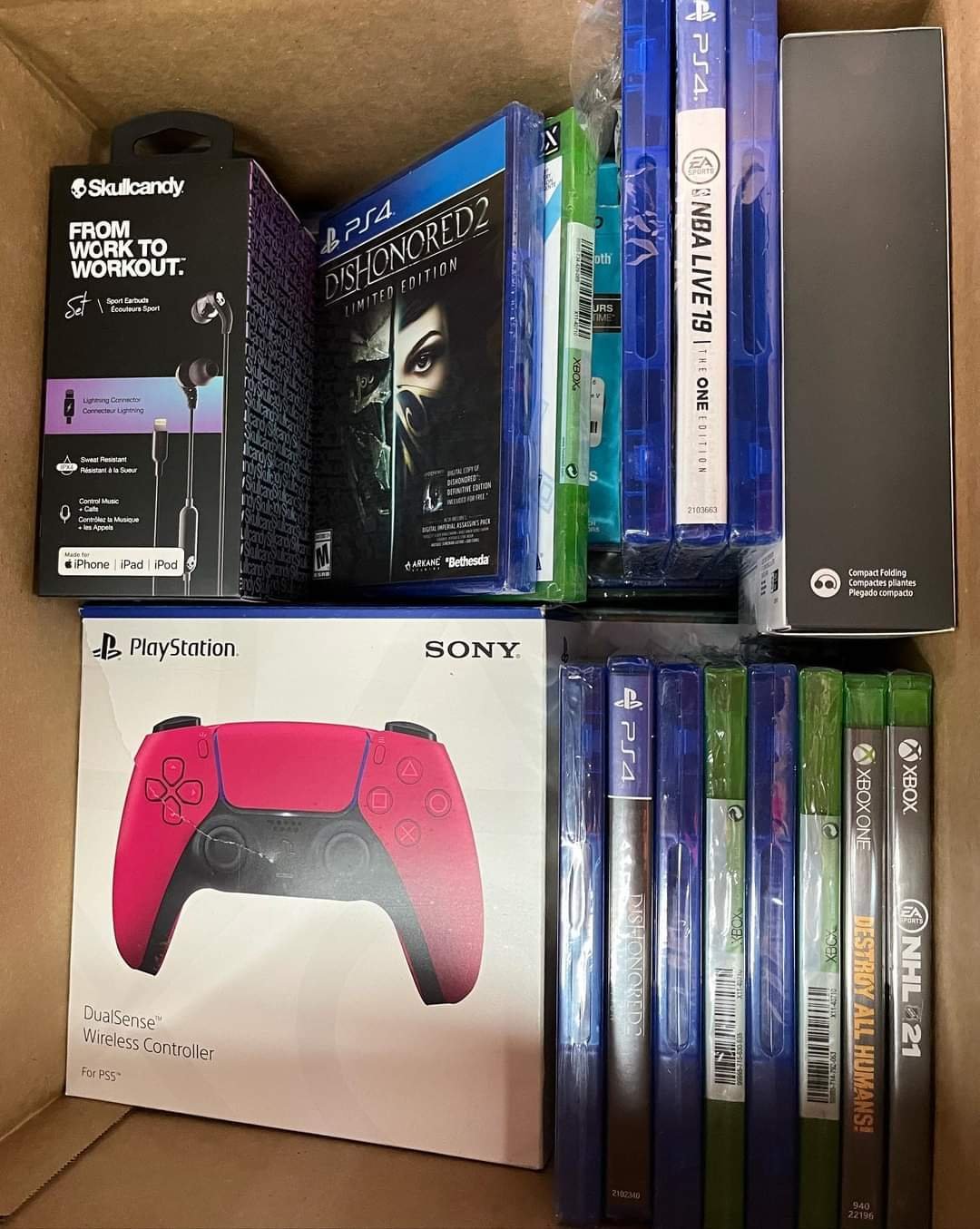 The Amazon electronic mystery box contains a lot of electronics such as iPhones, airpods, controllers, music players charger ps5 and many other accessories